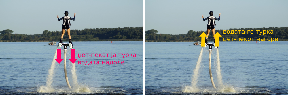 Овој воден џет-пек го користи третиот Њутнов закон за да функционира.